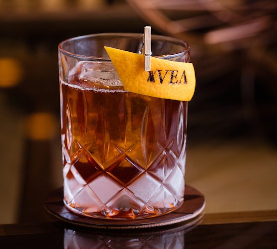 將所有原料一起攪勻,濾入加了一塊大方培訓的洛克杯,以橙皮卷裝飾,上桌時給客人送上一個微笑。