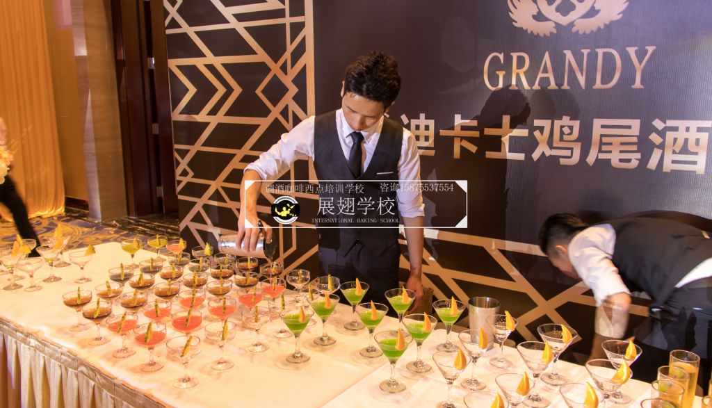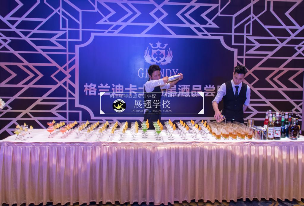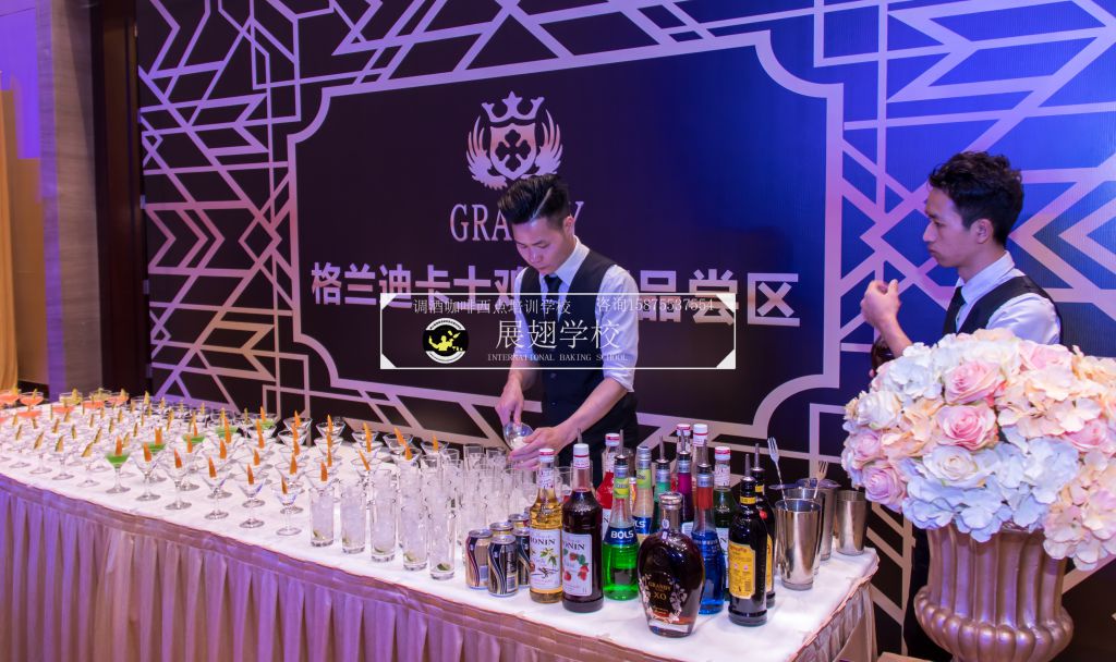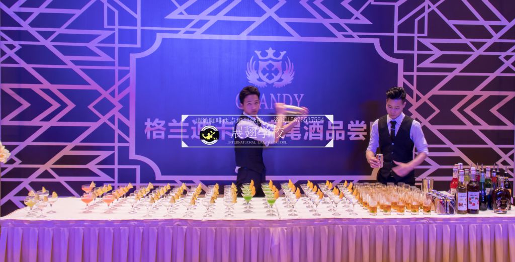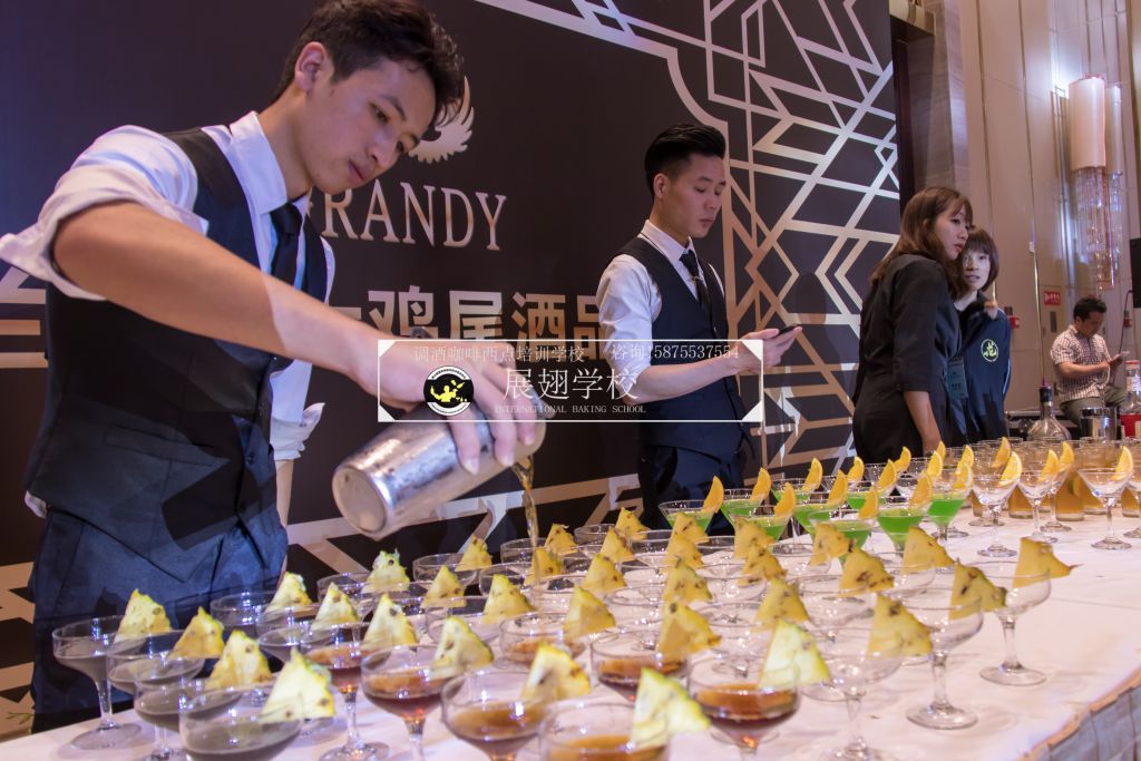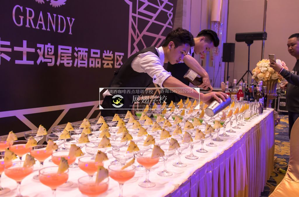 2018年3月17日,佛山展翅調酒咖啡西點培訓學校的調酒師應邀參加了法國格蘭迪卡士五周年慶典聯歡晚會,在晚會現場,我們的調酒師為晚會的來賓朋友們精心調制各種雞尾酒。本次外出實踐活動,是由我們學校的老師朱歡洪帶領新學員一起參加,這樣可以檢驗學員這段時間以來的學習成果,老師在一旁輔助指出其不足指出以便學員改進并提升自己的調酒技能。同時,也讓我們的新學員第一次真實體驗到了調酒的樂趣,看著現場每一位品嘗雞尾酒的人,才真正感覺到調酒師這個職業存在的意義和魅力所在,希望調酒班學員們能享受到其中的樂趣。