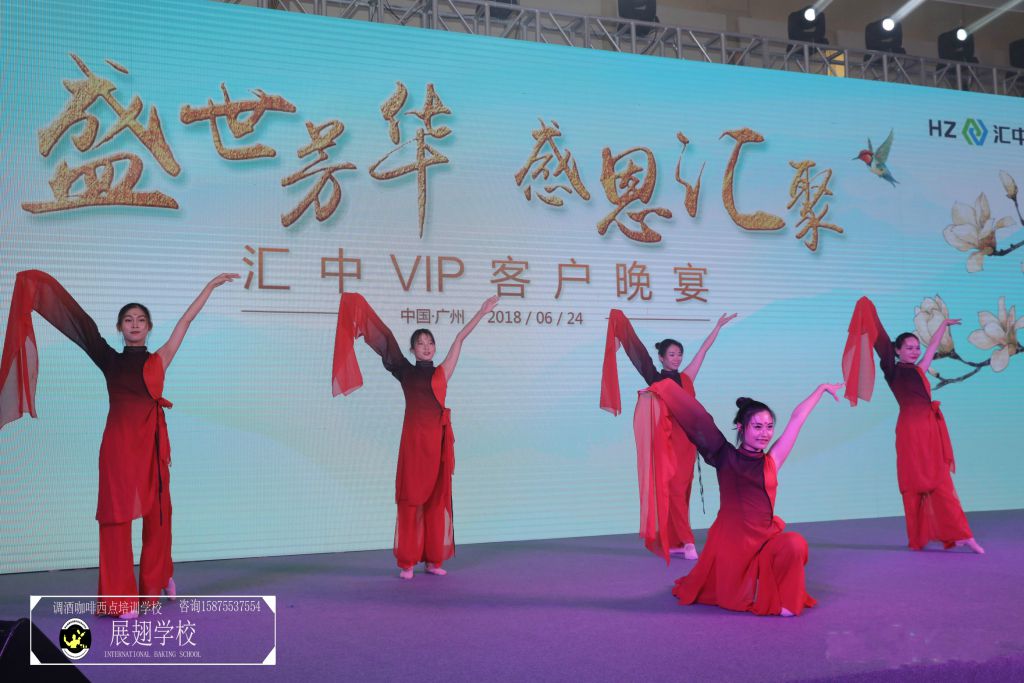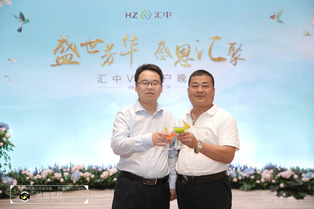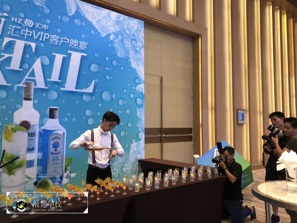 2018年6月24日,“盛世芳華 感恩匯聚”匯中VIP客戶晚宴在廣州南豐朗豪酒店隆重舉行。佛山展翅咖啡調酒西點培訓學校的調酒師學員也開啟了一場充分展示調酒才藝的芳華實踐之旅!從宴前準備、擺酒、調酒到嘉賓品酒,臺上的佳音妙舞,臺下的喜氣洋洋,都離不開魔力雞尾酒帶動起空氣分子的歡悅感和活躍力。本次學員實踐贏得全場嘉賓的好評!