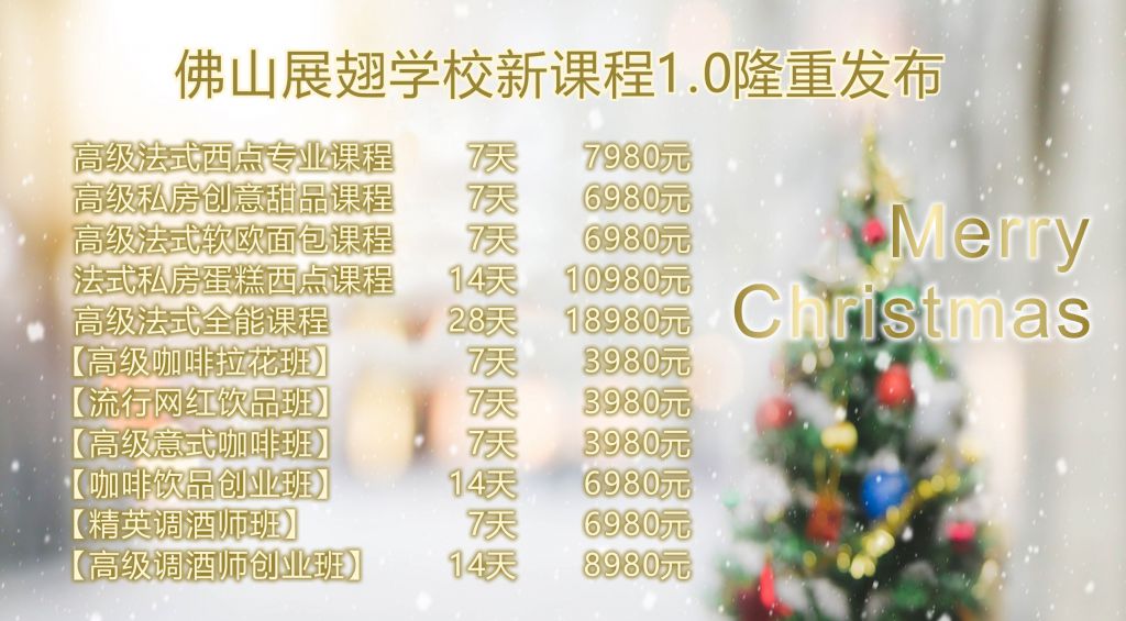 2.  圣誕節(jié)活動期間報名或預(yù)報名法式新課程,享受8折優(yōu)惠并附送2天網(wǎng)紅飲品課程