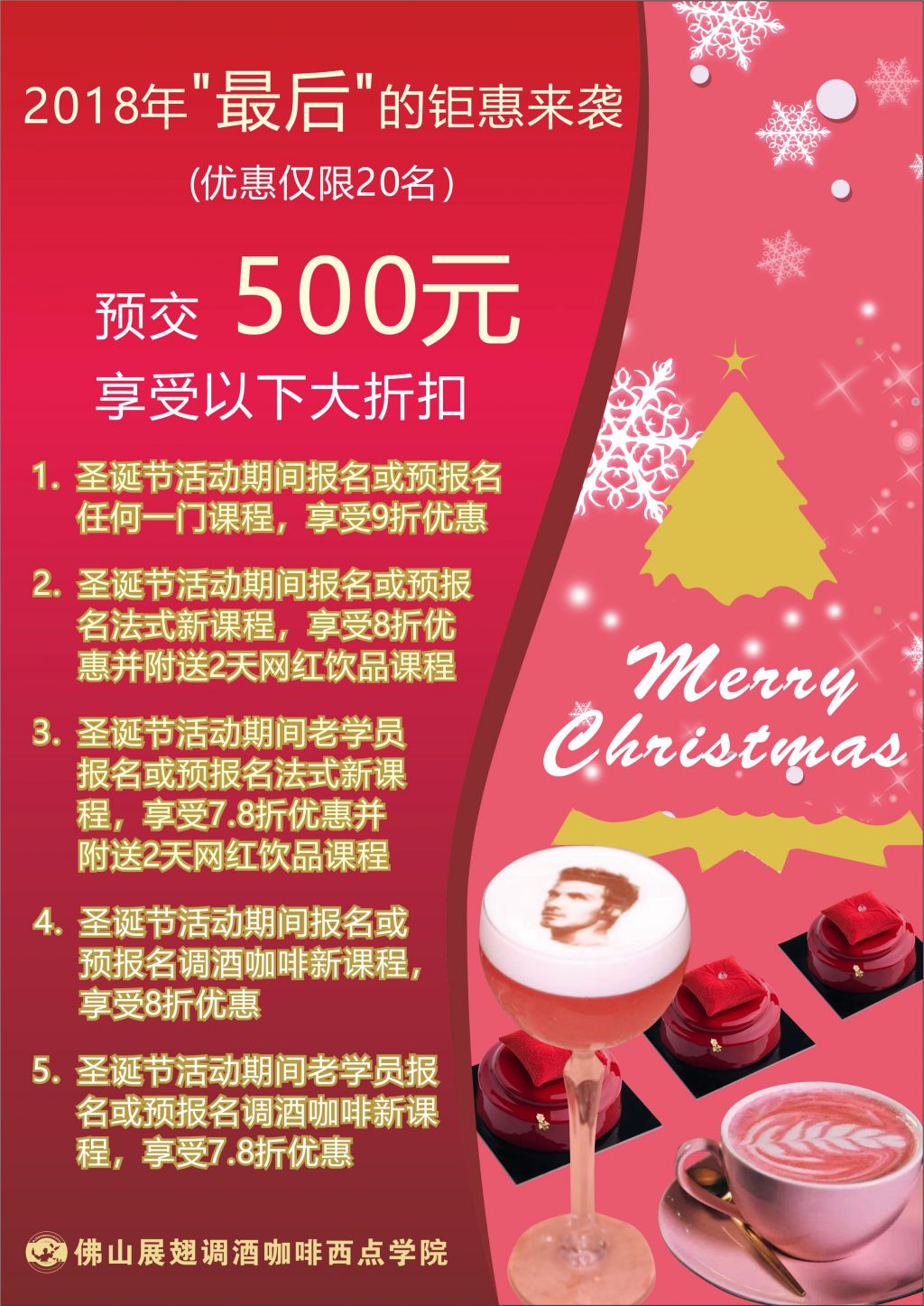 4.  圣誕節(jié)活動期間報名或預(yù)報名調(diào)酒咖啡新課程,享受8折優(yōu)惠
