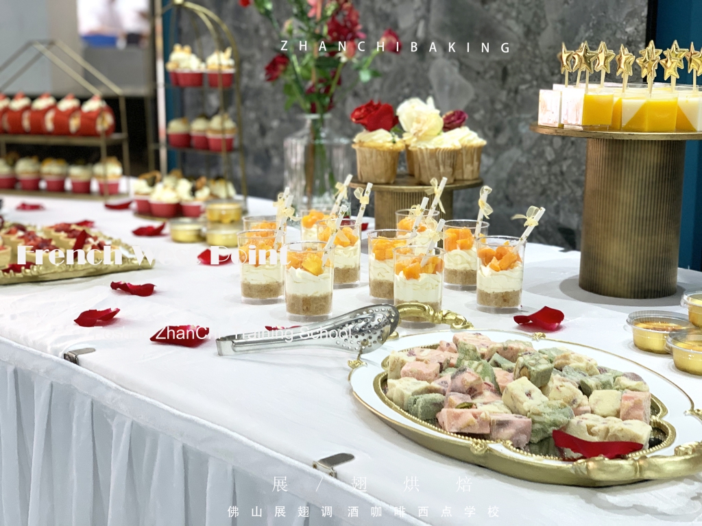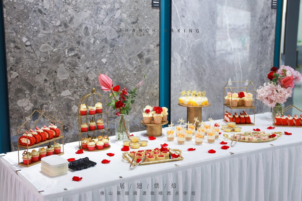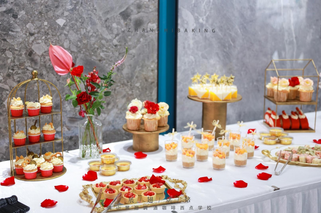 佛山市展翅調酒咖啡西點學院為其提供精美高端的甜品臺