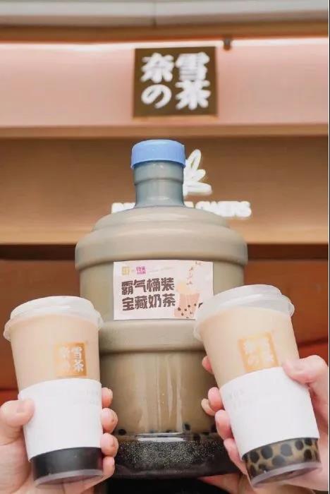 就算沒有這次疫情,奶茶就是年輕人心中“釋壓”的首選,再加上前段時間被隔離壓抑的消費需求,放飛自我點上幾大杯奶茶也是情理之中。奈雪就是看中了這點,他們限時限量推出了價值99元一桶,容量為5L的霸氣桶裝寶藏奶茶。這款奶茶一經推出就成了網友們熱議的焦點,前去指定門店搶購的人也絡繹不絕。除了作為小聚飲用之外,這種包裝的奶茶也能在朋友圈中為自己提供“社交貨幣”。