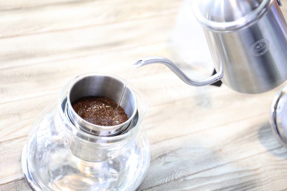 b、過濾杯自帶小孔,可以直接過濾咖啡粉。