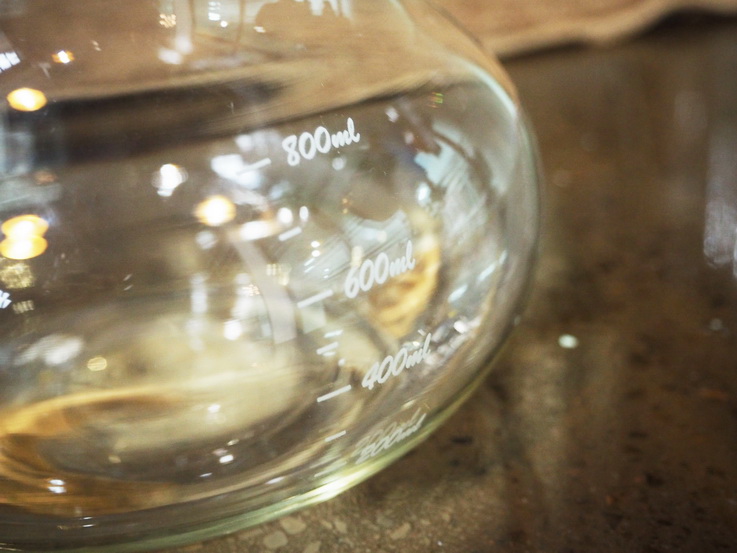 觀察分享壺中的刻度,達(dá)到400ml刻度線時可以關(guān)閉閥門以停止萃取。