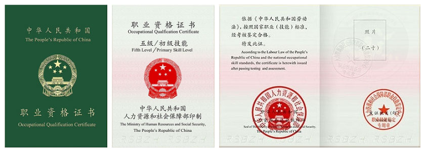 國家職業資格五級(初級樣板證書)