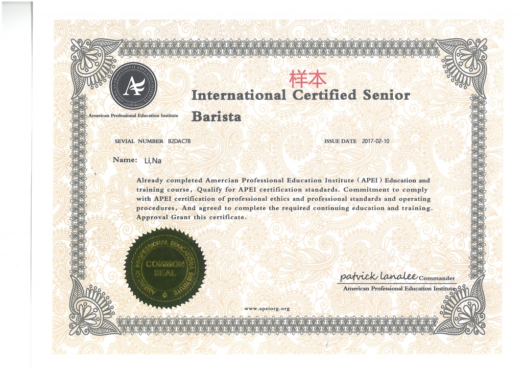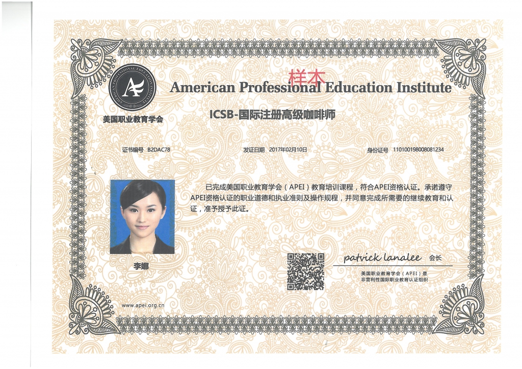 美國職業(yè)教育學(xué)會APEI調(diào)酒師、咖啡師、西點(diǎn)師職業(yè)資格證書